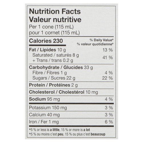 ICE CREAM (MODIFIED MILK INGREDIENTS, SUGARS (SUGAR, GLUCOSE), CREAM, MONO- AND DIGLYCERIDES, CAROB BEAN GUM, CELLULOSE GUM, GUAR GUM, POLYSORBATE 80, CARRAGEENAN, NATURAL FLAVOUR), SUGAR CONE (ENRICHED WHEAT FLOUR, SUGARS (SUGAR, REFINERS' MOLASSES), SOYBEAN AND/OR PALM OIL SHORTENING, SALT, SOYA LECITHIN, CARAMEL COLOUR), CARAMEL RIPPLE (SUGARS (CONDENSED MILK, SUGAR, GLUCOSE, BROWN SUGAR,), WATER, COCONUT OIL, SALT, NATURAL FLAVOUR, SODIUM CITRATE, CARRAGEENAN, SOYA LECITHIN), CHOCOLATEY LINING (SUGAR, COCONUT OIL, COCOA, MODIFIED PALM KERNEL OIL, MODIFIED PALM OIL, SOYBEAN OIL), MILK INGREDIENTS, SOYA LECITHIN), CHOCOLATEY TOPPING (COCONUT OIL, SUGAR, COCOA POWDER, SOYA LECITHIN, NATURAL FLAVOUR, SALT), SALTY TOFFEE PIECES (SUGARS (SUGAR, GLUCOSE), WHOLE MILK POWDER, SALT, COCOA).
